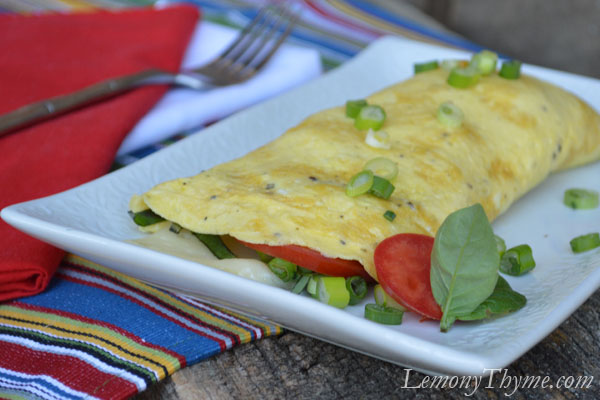 There’s nothing complicated or new to learn from this post. It’s just a reminder to use your fresh herbs every chance you get. They can take a ho hum omelet and give it a bright pop of flavor. That’s just what fresh basil and scallions did to our tomato and avocado omelet. Havarti cheese came along and gave it a big group hug.