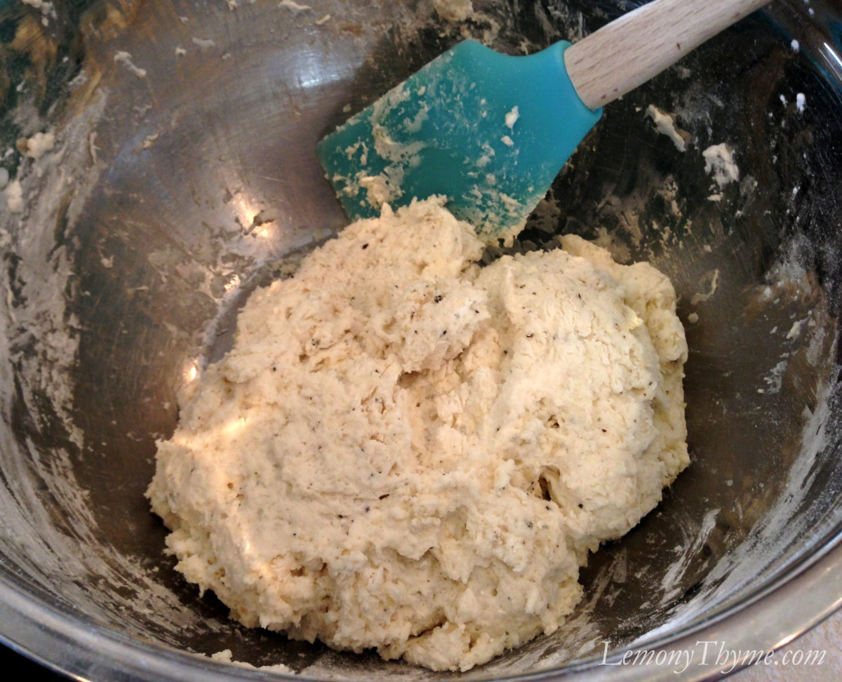 - Turn dough out onto a well floured surface. Knead dough, turning about 6-8 times just until it comes together (do not overwork). Form into a 6-inch round and place on an ungreased baking sheet. Use a sharp knife and cut a 1/2″ deep ‘x’ in the top of dough. Use a fine mesh sifter and dust top of bread with flour.
