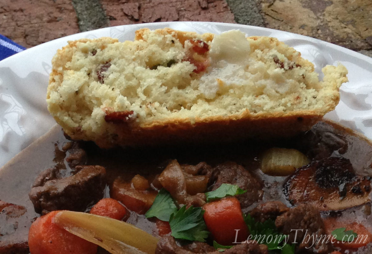 Because we wanted to infuse this bread with the flavor of sage and bacon, we replaced the melted butter with the bacon drippings infused with sage. Soda Bread is a no-rise, no-fuss bread. Ingredients are combined, a little kneading of the dough, then straight into the oven. Bacon & Sage Soda Bread, aka Crusty Bread went so nicely with our Classic Beef Stew.