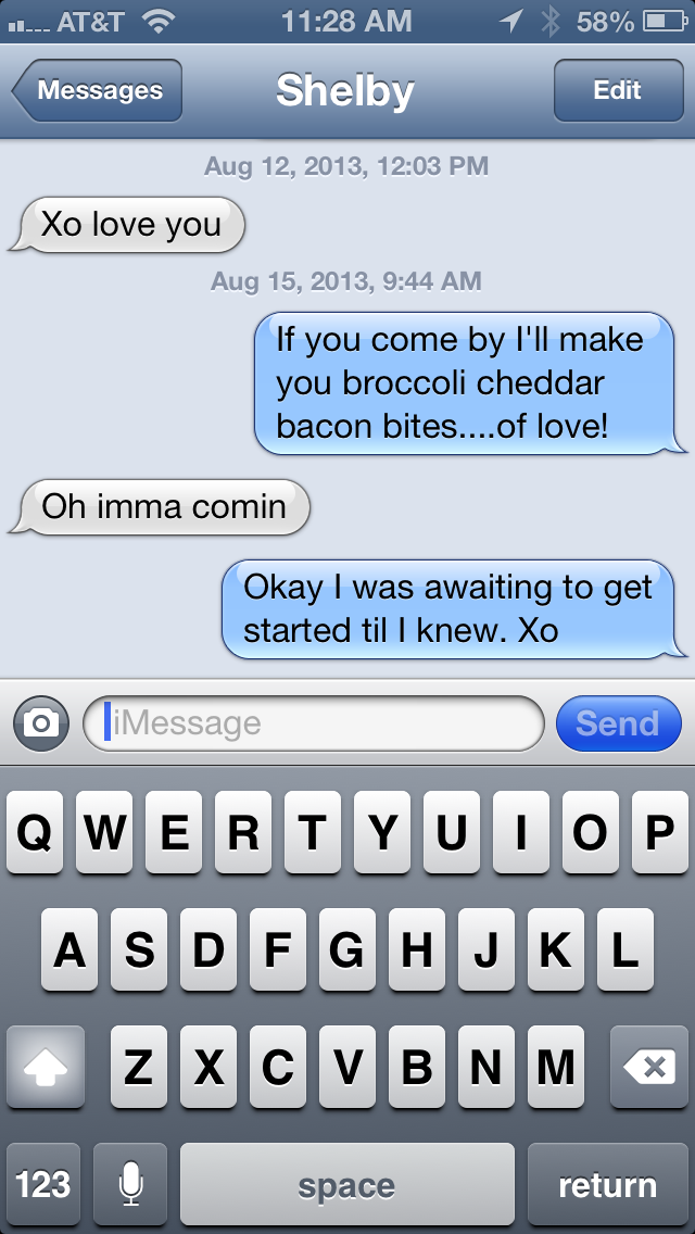 I also found they work well to lure adult children back to the house. I floated this text and not long after Shelby arrived…in time to help roll, coat, bake and sample.