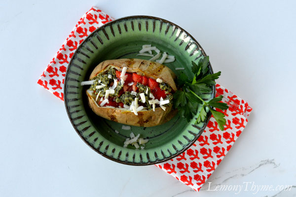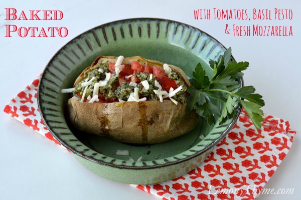 Baked Potato {with Tomatoes, Basil Pesto & Fresh Mozzarella}
