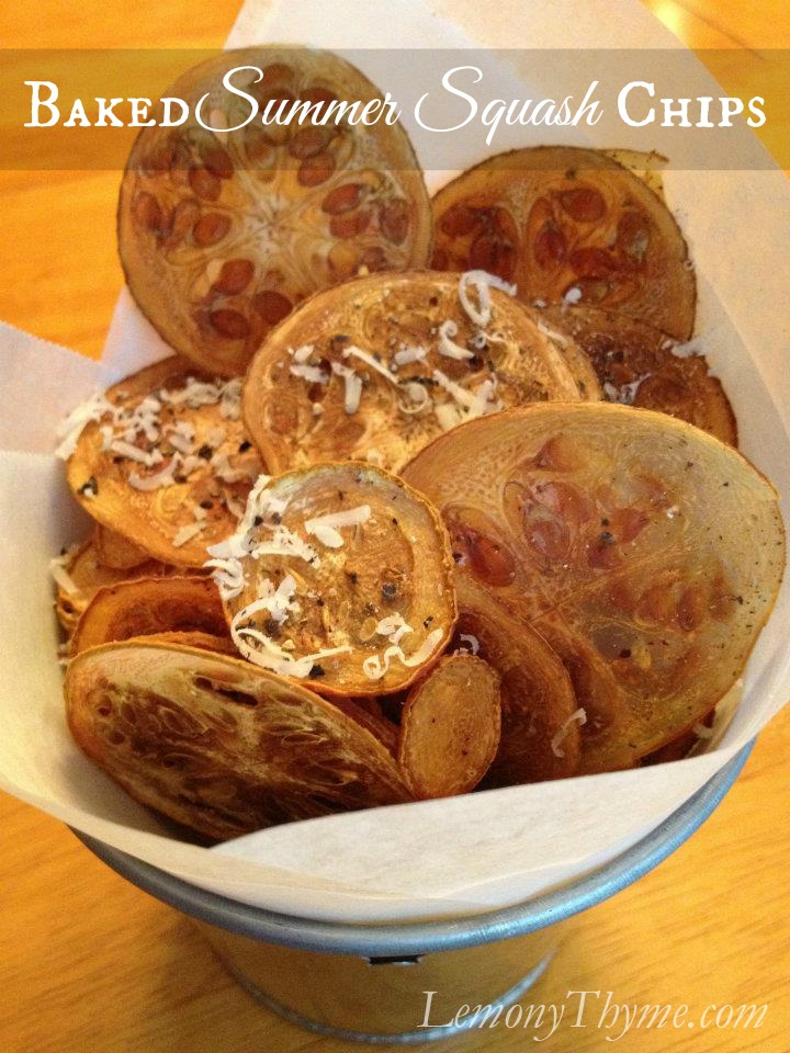 Have you ever made Baked Summer Squash Chips? Last July when summer squash was in abundance at the Farmers’ Market, I couldn’t help but bring home my fair share after every visit.