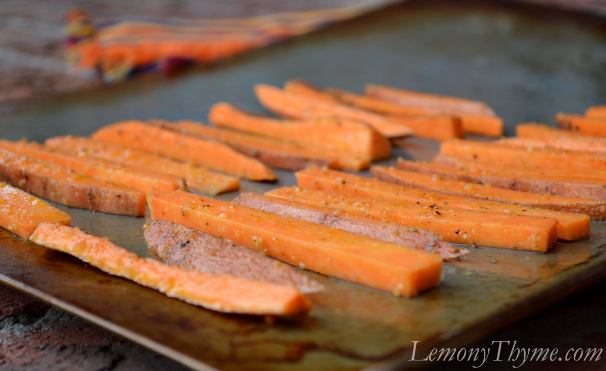 - 2 pounds sweet potatoes, about 2 med-large. cut into 3/8-inch to 1/2-inch sized fries