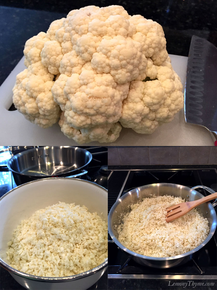 The process of making Cauliflower Rice is very simple. Cut head of cauliflower into florets, discarding tough core. Chop in food processor, using pulse feature, until the cauliflower resembles rice sized pieces.
