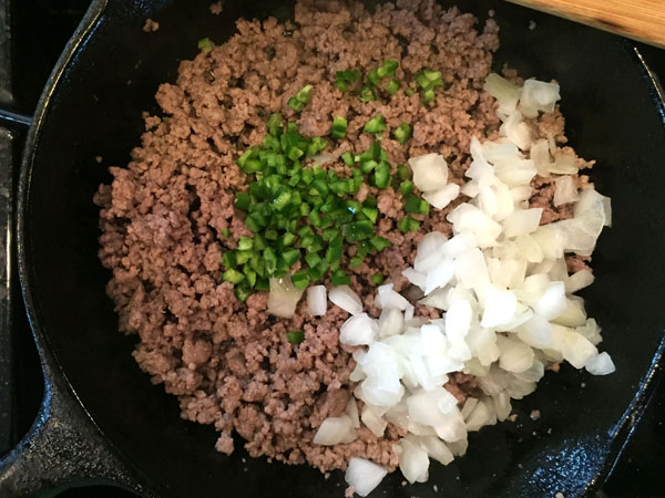 - Add diced onion and jalapeno and sauté until tender, about 3-4 minutes.
