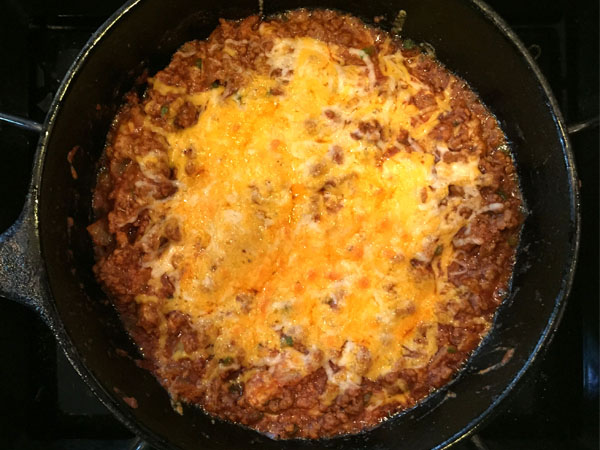 See how easy that was!! Bam! And while this one-pan stovetop recipe comes together, go ahead and bake some tortilla chips to serve along side.