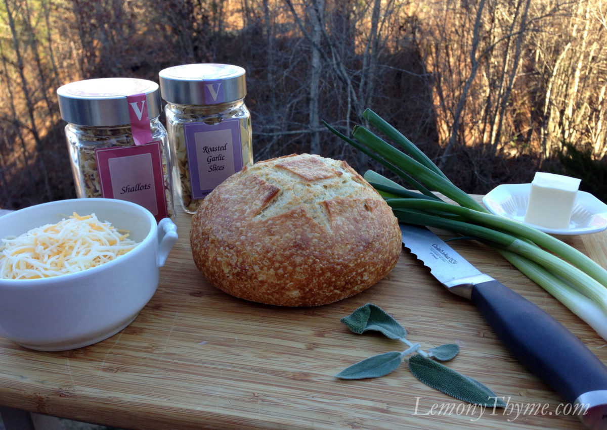 Any time we’re melting this much butter, yep you guessed it…we add fresh sage and in this case scallions, roasted garlic and shallot. Here is a step-by-step picture version of how this Cheesy Garlic & Herb Pull-Apart Bread breaks down.