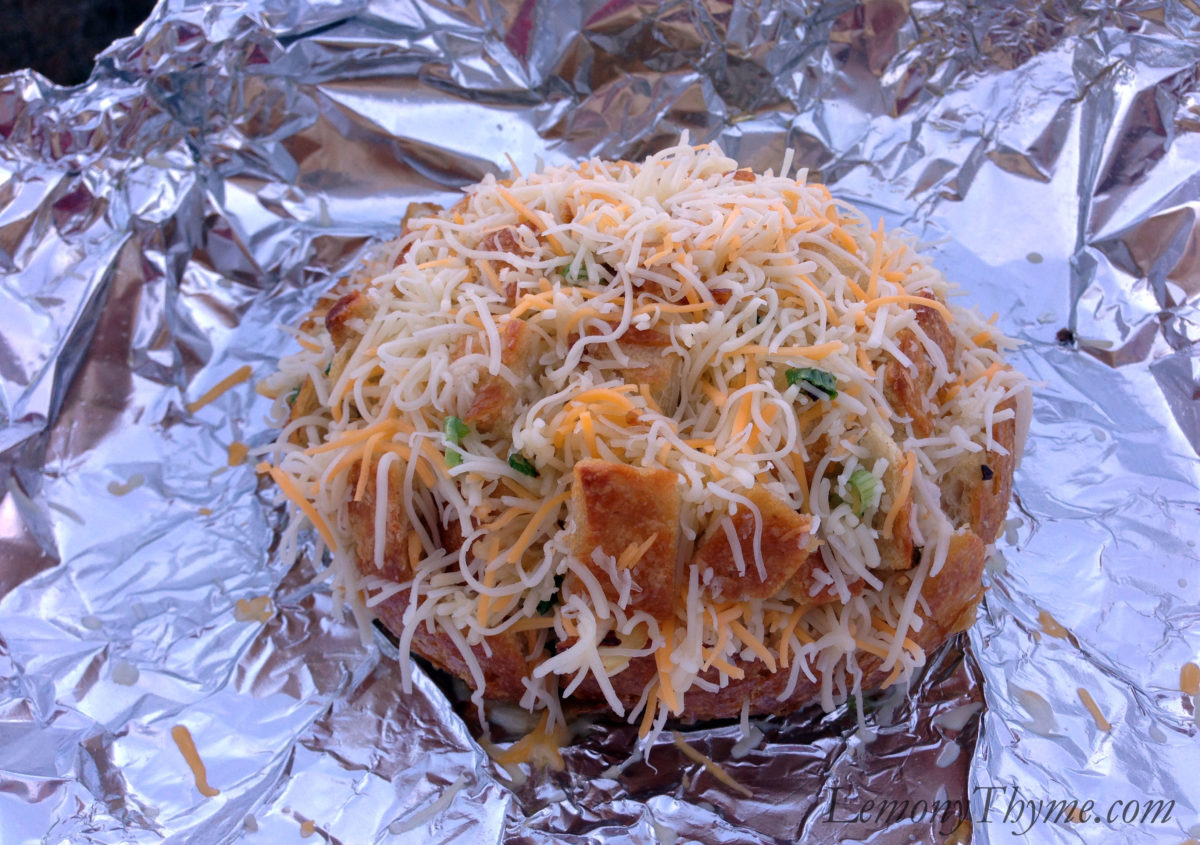 - Sprinkle the shredded cheese on top of the bread and in between the slices, pushing it in as much as possible. Leave the foil open and return it to the oven. Bake until the cheese is completely melted, bubbling and starting to brown on top, about 10 – 12 minutes. Let stand for 5 minutes before serving.