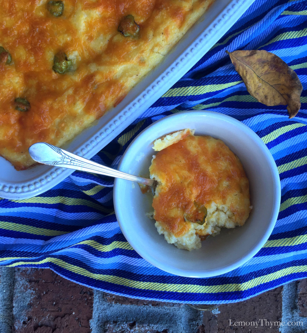 Cheesy Jalapeno Grits Casserole | LemonyThyme.com | #comfortfood #breakfast #brunch #sidedish