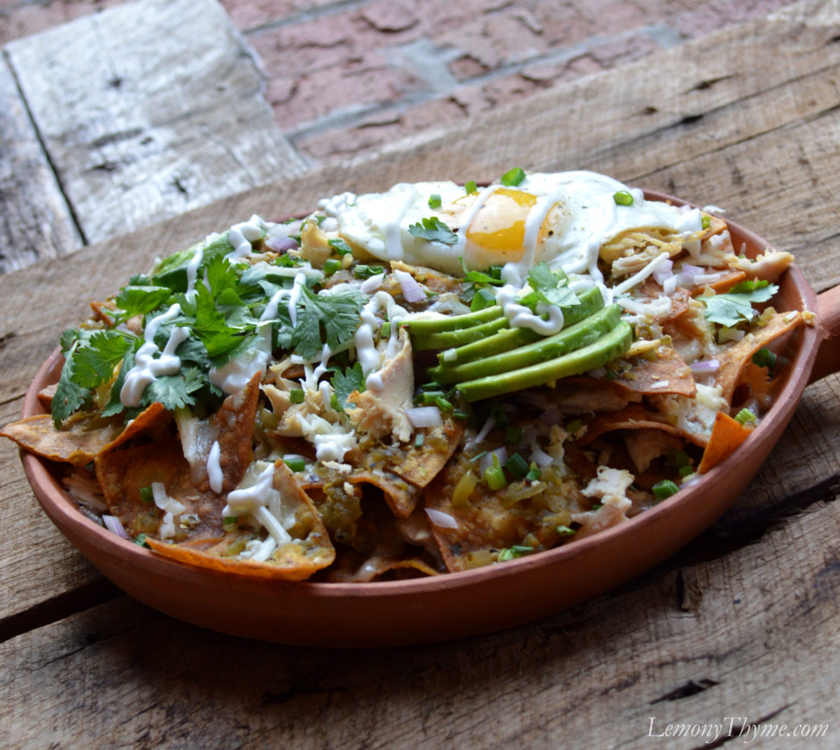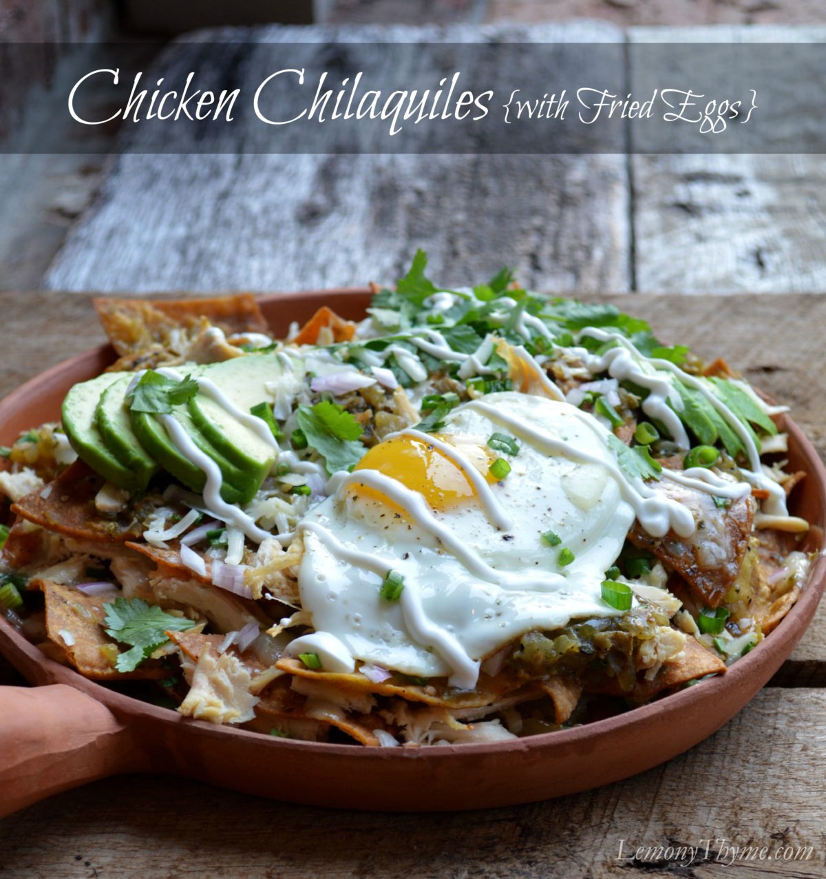 Chicken Chilaquiles {with Fried Eggs} is often served as a breakfast dish.