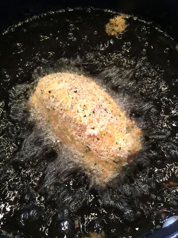 - Heat 2-inches of canola oil in a Dutch oven over medium-high heat. Brown chicken rolls for 1-2 minutes per side or until deep golden brown. Remove to drain on paper towels. Place browned chicken rolls into a baking dish. Bake for 20 minutes. Let stand for 5-minutes before serving.