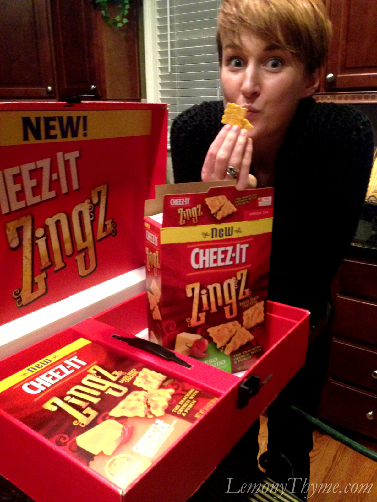 Today, was the day I revealed my Cheez-It gear AND my first recipe incorporating their brand new Zingz Crackers. Here I am. How stinking awesome is this get up?!