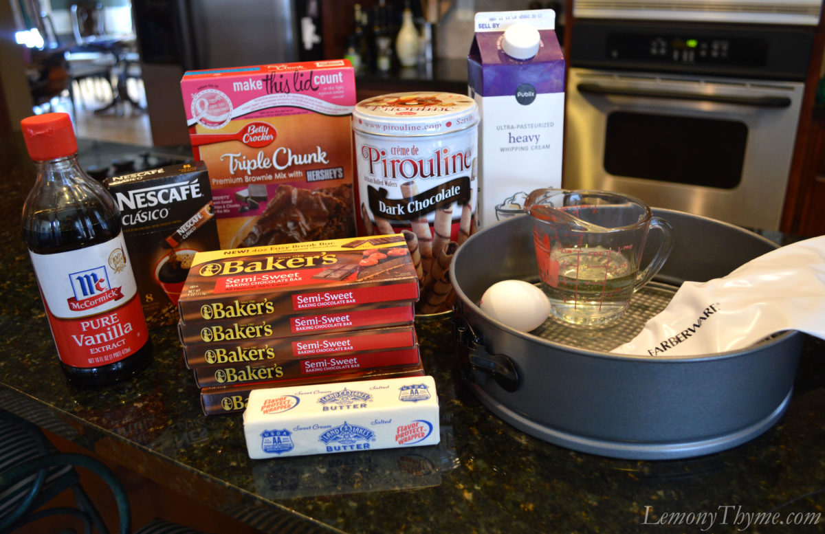 - 1 box chocolate brownie mix prepared according to package instructions (I used Betty Crocker Triple Chunk Chocolate)