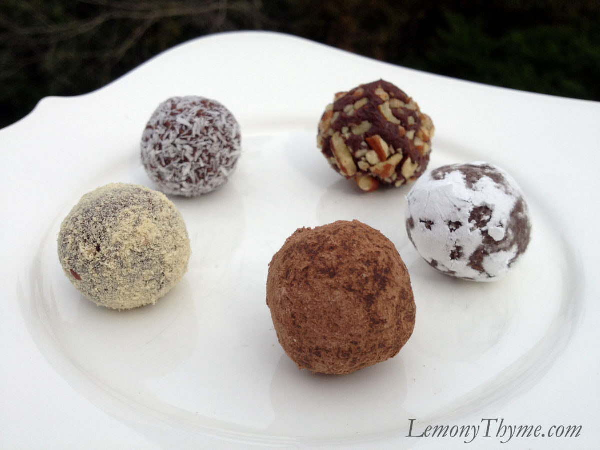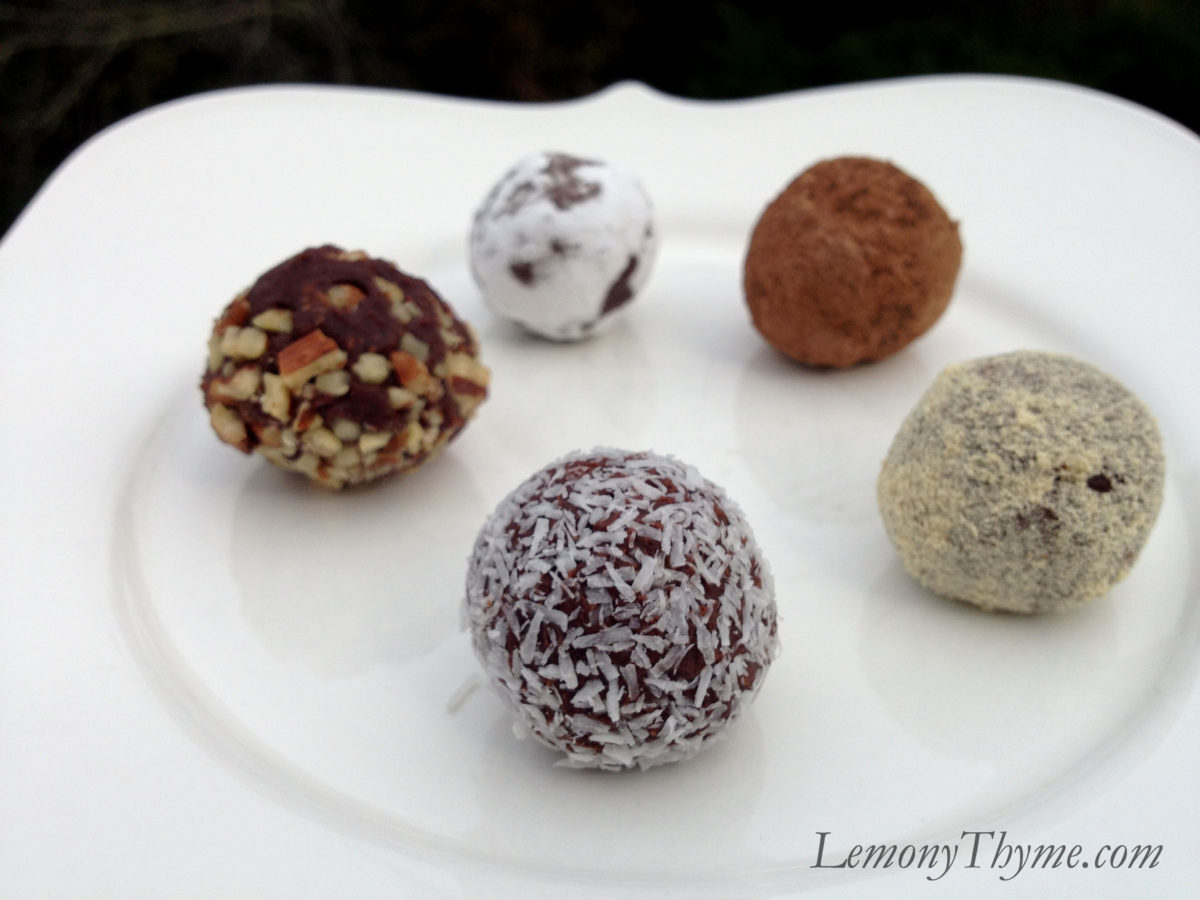Of all our posts to Lemony Thyme or Facebook….Adventures in Chocolate get the most attention. After several weeks of posting crazy decadent desserts I had a friend request something non-dairy (but I got the feeling a fresh fruit parfait wasn’t what she was envisioning). So I present you with Chocolate Truffles, easily converted to non-dairy.