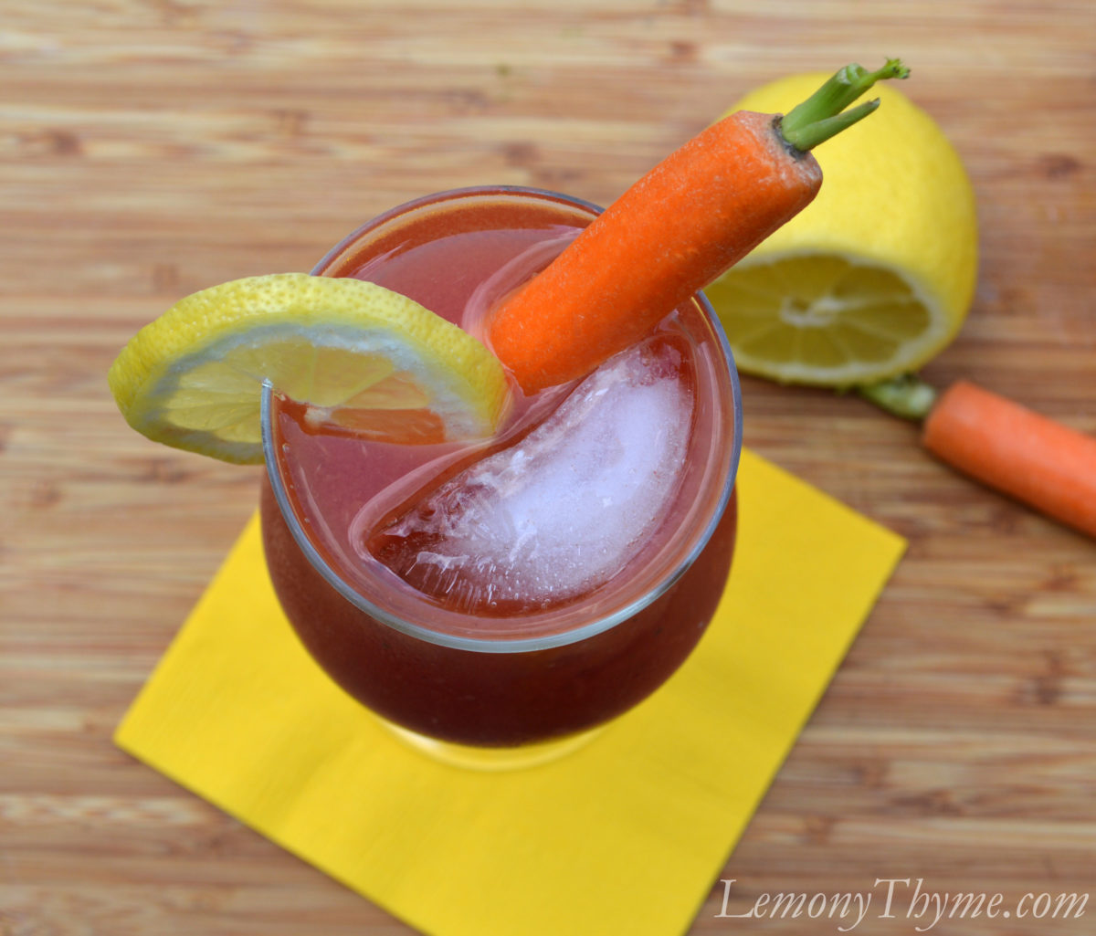 - When ready to serve, fill glasses with ice cubes, top with Bloody Mary mixture. Garnish with favorite fruit or veggies, like lemon slices, celery or carrot.