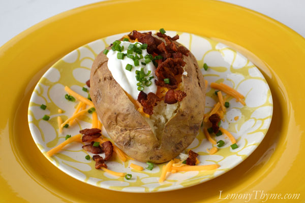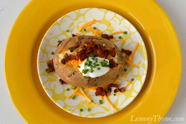 Classic Loaded Baked Potato {with Butter, Sour Cream, Bacon, Cheddar and Chives}