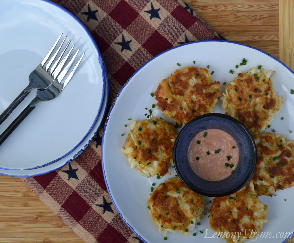 I served them with a simple remoulade sauce and we enjoyed them for lunch. I think I’ll add these to my holiday hors d’oeuvres spread, but make them silver dollar sized.