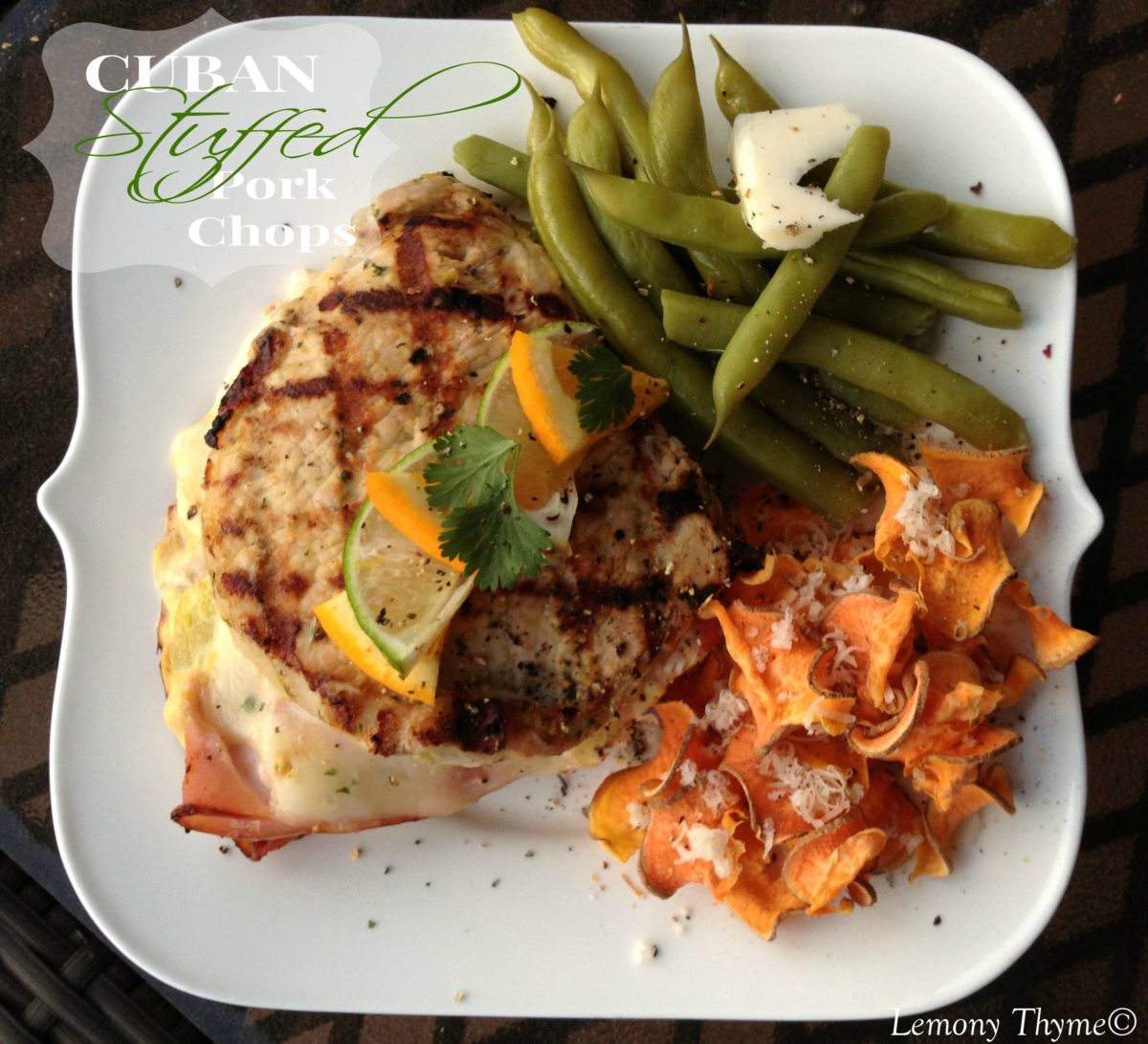 Cuban Stuffed Pork Chop {with Sweet Potato Chips}