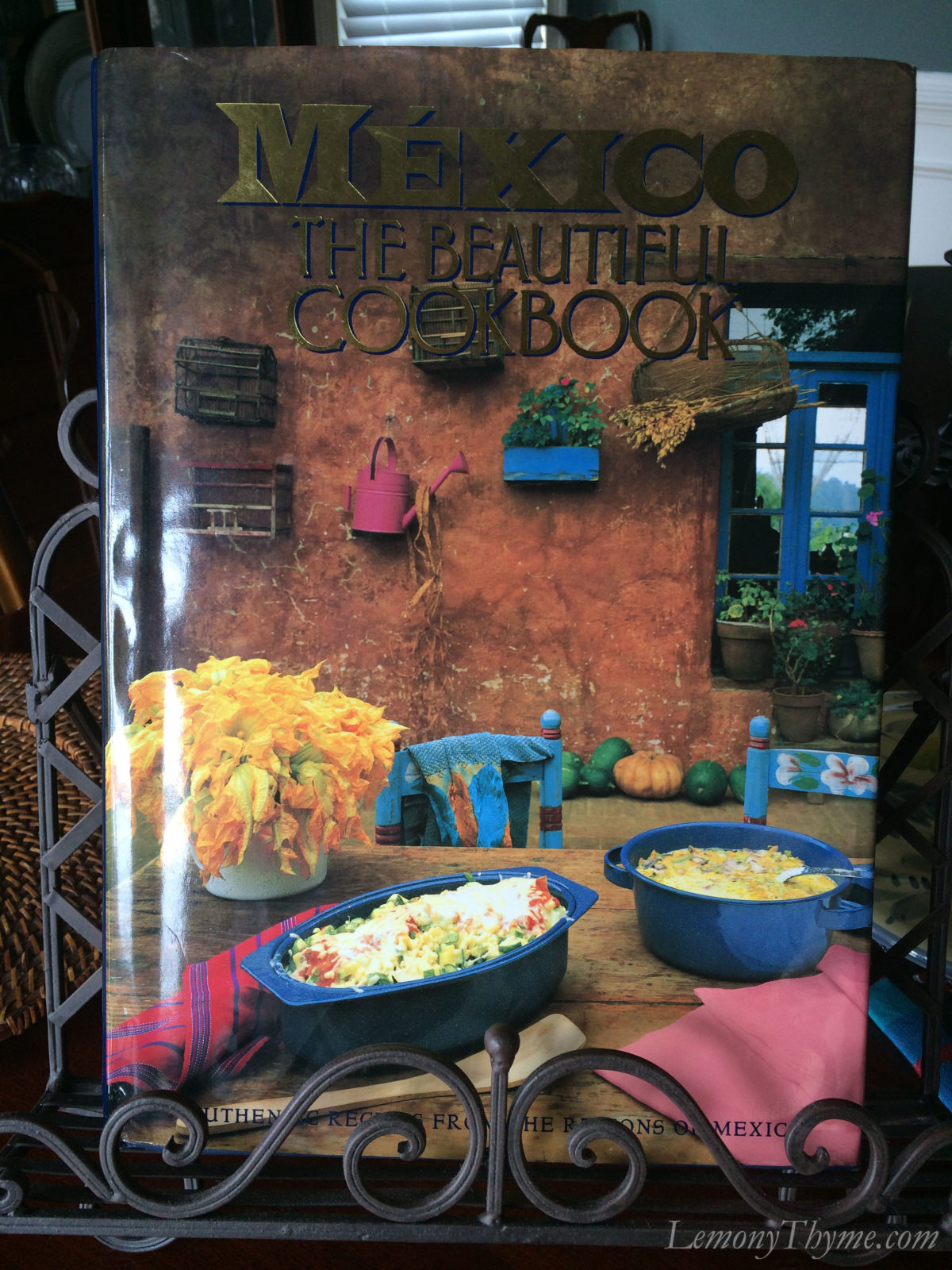 To say I love ‘thrifting’ is an understatement. And as a food blogger, I’m not alone. We’ve always got an eye out for unique dishes and props to use for our food photography sessions. I head straight to the dish/cookware section when I enter a thrift store then head to the cookbook shelf. Last week while visiting our local Humane Society Thrift Store I spied this gorgeous cookbook. The cover recipe was for Budín Azteca aka Aztec Casserole which matched this week’s Farmers Market bounty beautifully.
