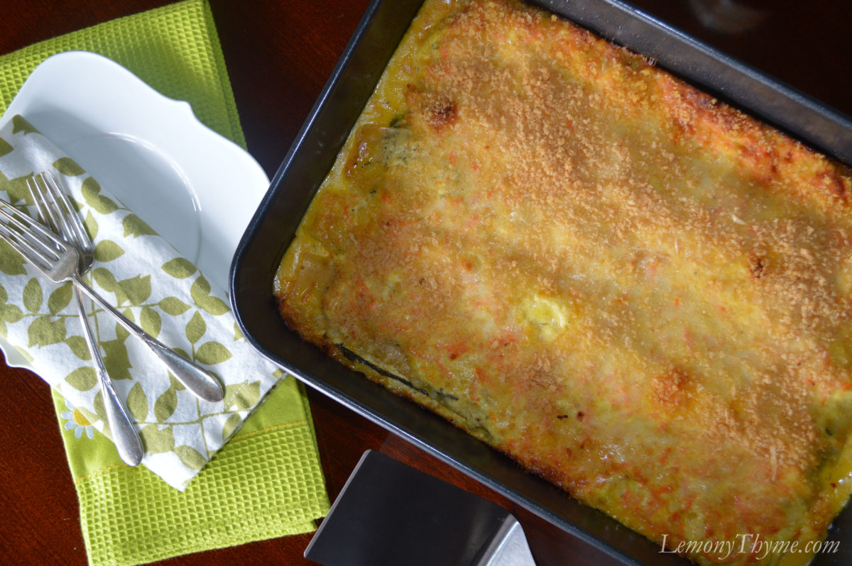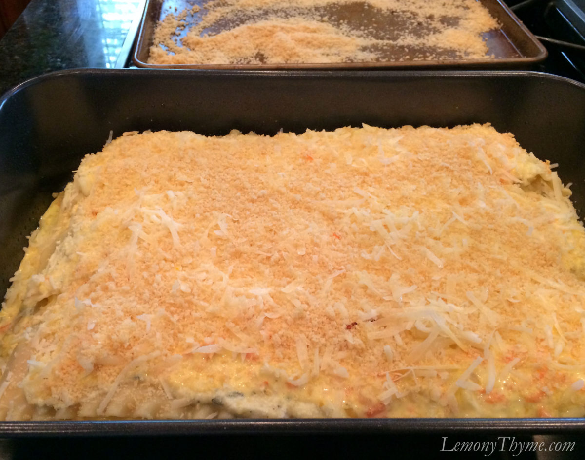 Toasted breadcrumbs. I love finishing this delicate lasagna with a layer of toasted panko breadcrumbs.