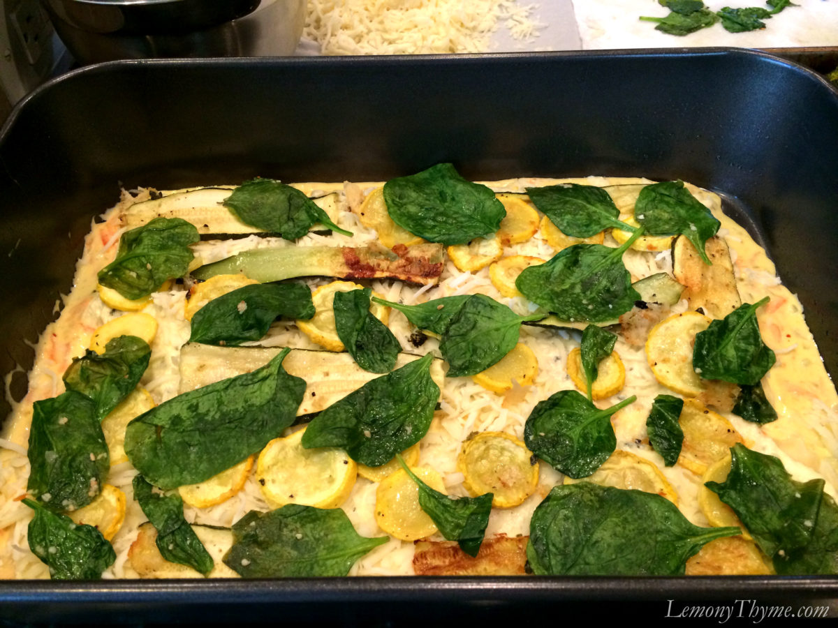 I also sautéed 2 cups of fresh spinach with some minced garlic, then pressed it dry between paper towels. You could use thawed frozen spinach as well.
