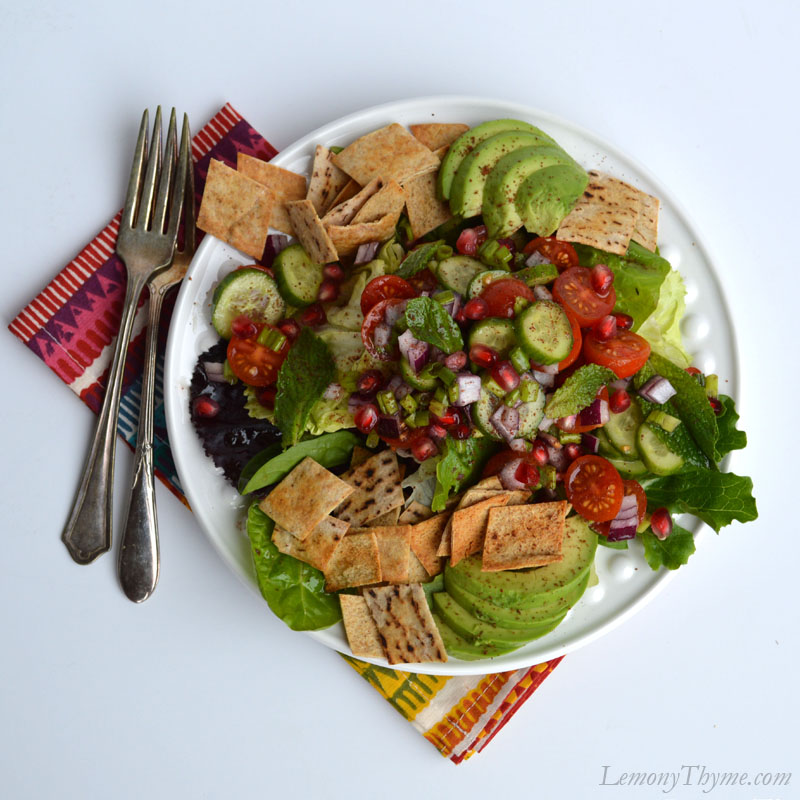 Fattoush is a Lebanese twist on the Tuscan Panzanella Bread Salad, using toasted pita bread. This salad makes a wonderful easy lunch or add grilled shrimp or chicken for a lovely dinner salad that your family and guests will be smitten with.
