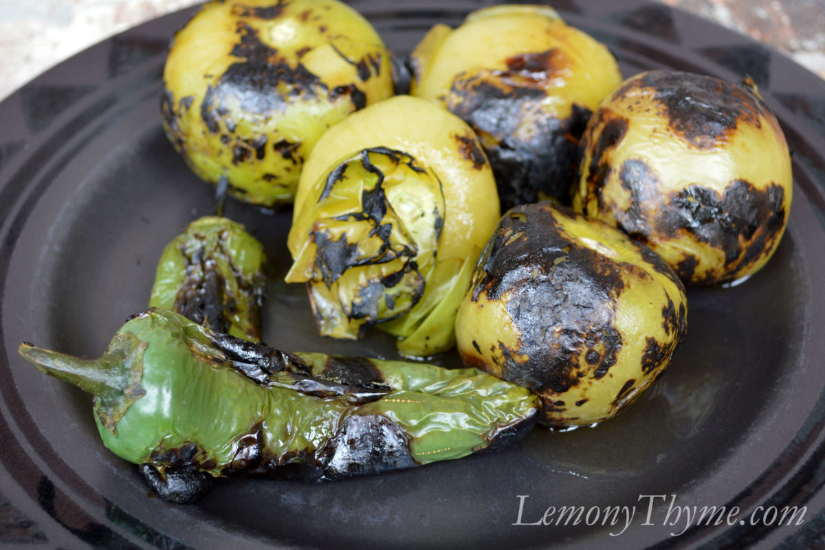 A pair of tongs and an open flame is all you need. If you don’t have either you could use your grill or broiler. Charring them gives a nice smoky flavor to the salsa turned guacamole.