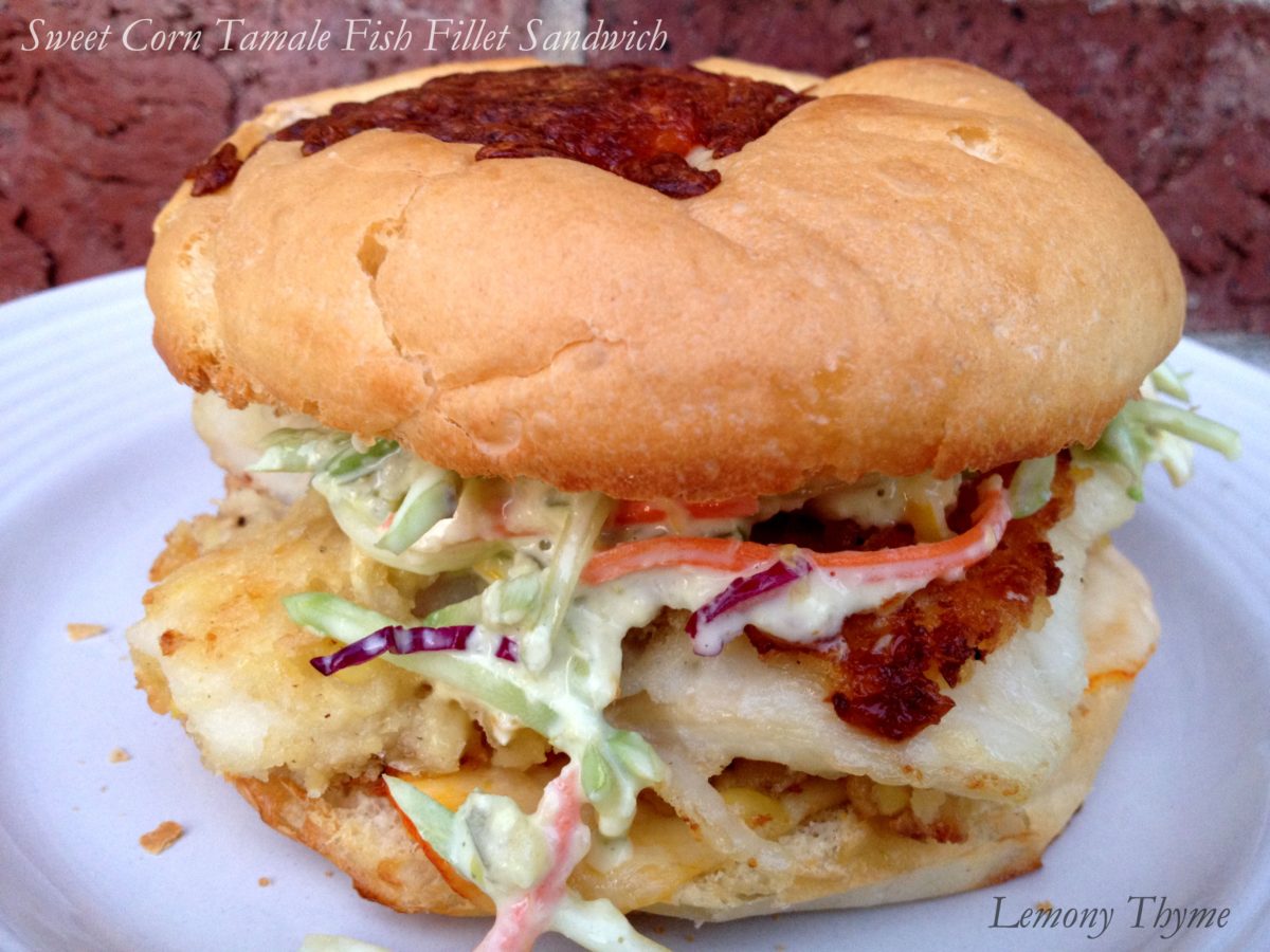 Sweet Corn Tamale Cake Fish Sandwich