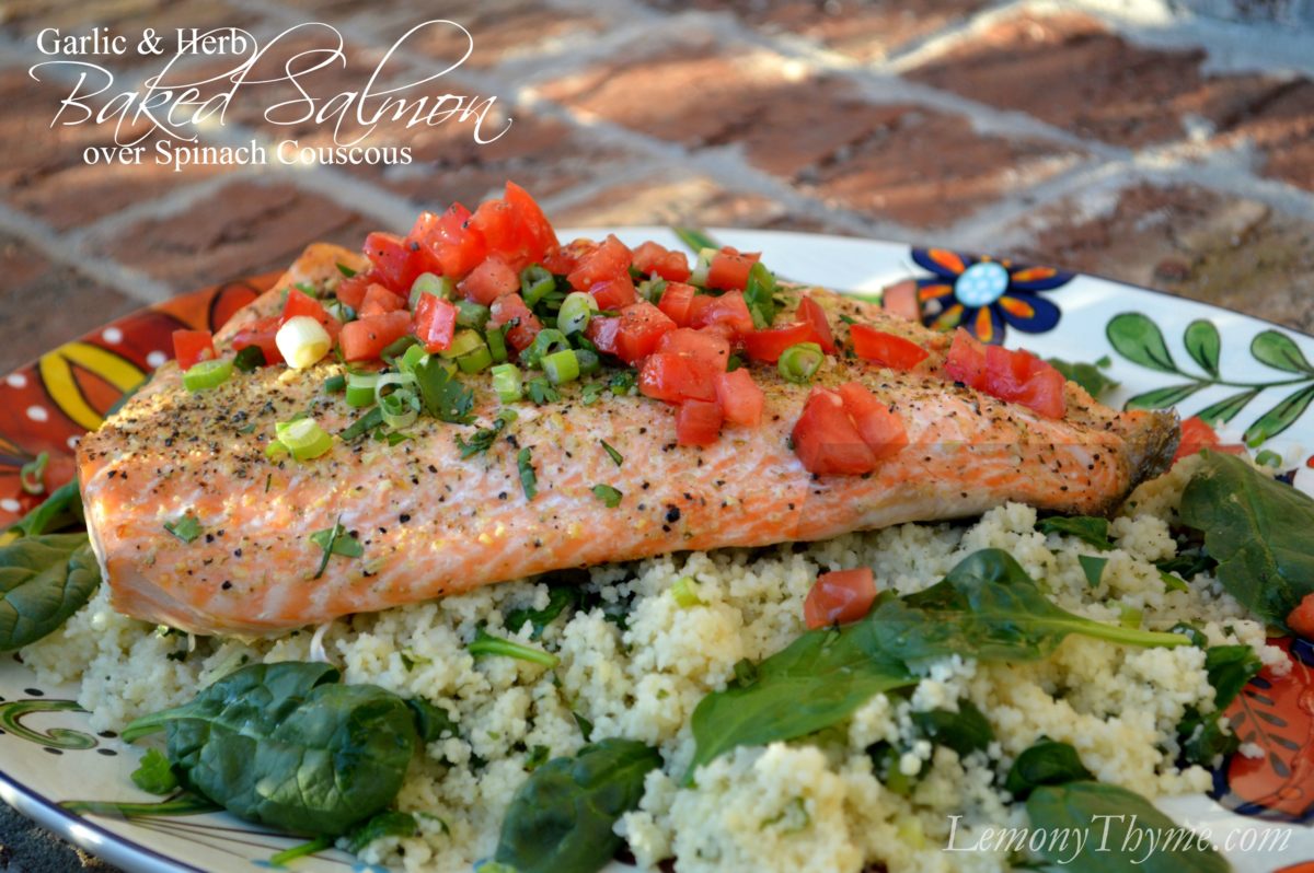 Garlic & Herb Baked Salmon {over Spinach Couscous}
