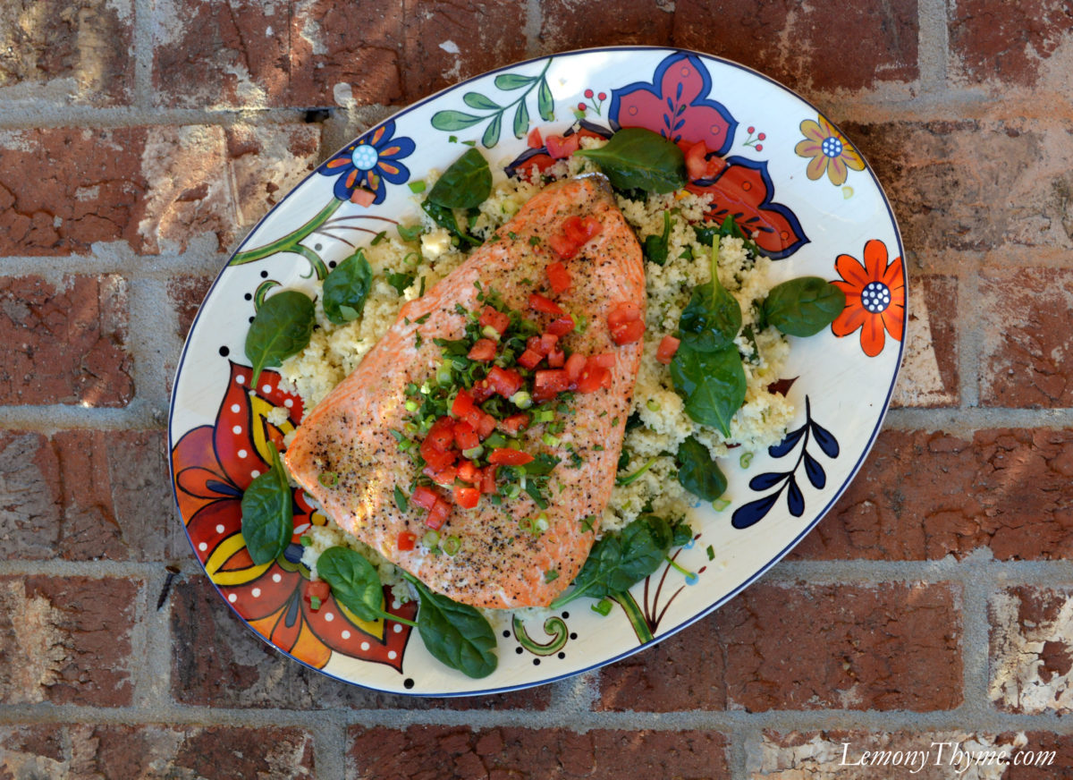 This one is just too good not to share. There’s nothing fancy about Garlic & Herb Baked Salmon over Spinach Couscous. Start to finish it’s ready in 20 minutes.
