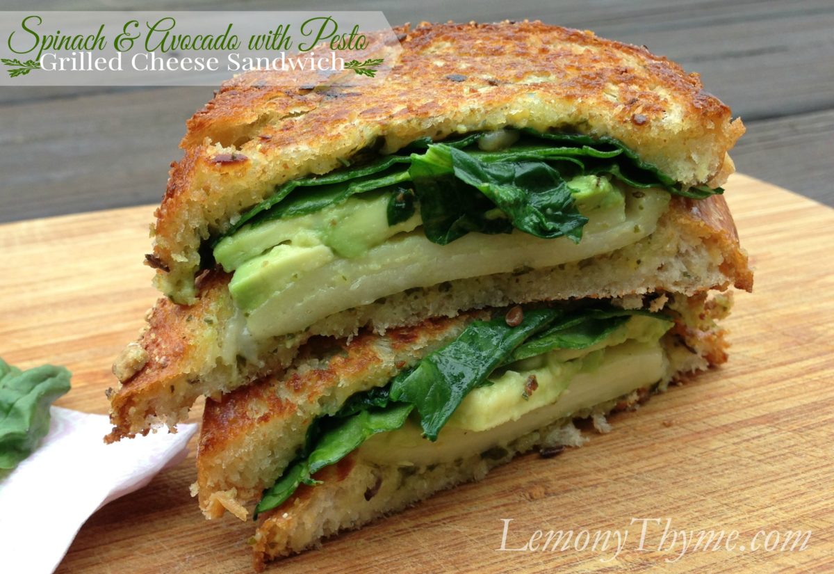 ~ Spinach & Avocado with Pesto Grilled Cheese Sandwich ~