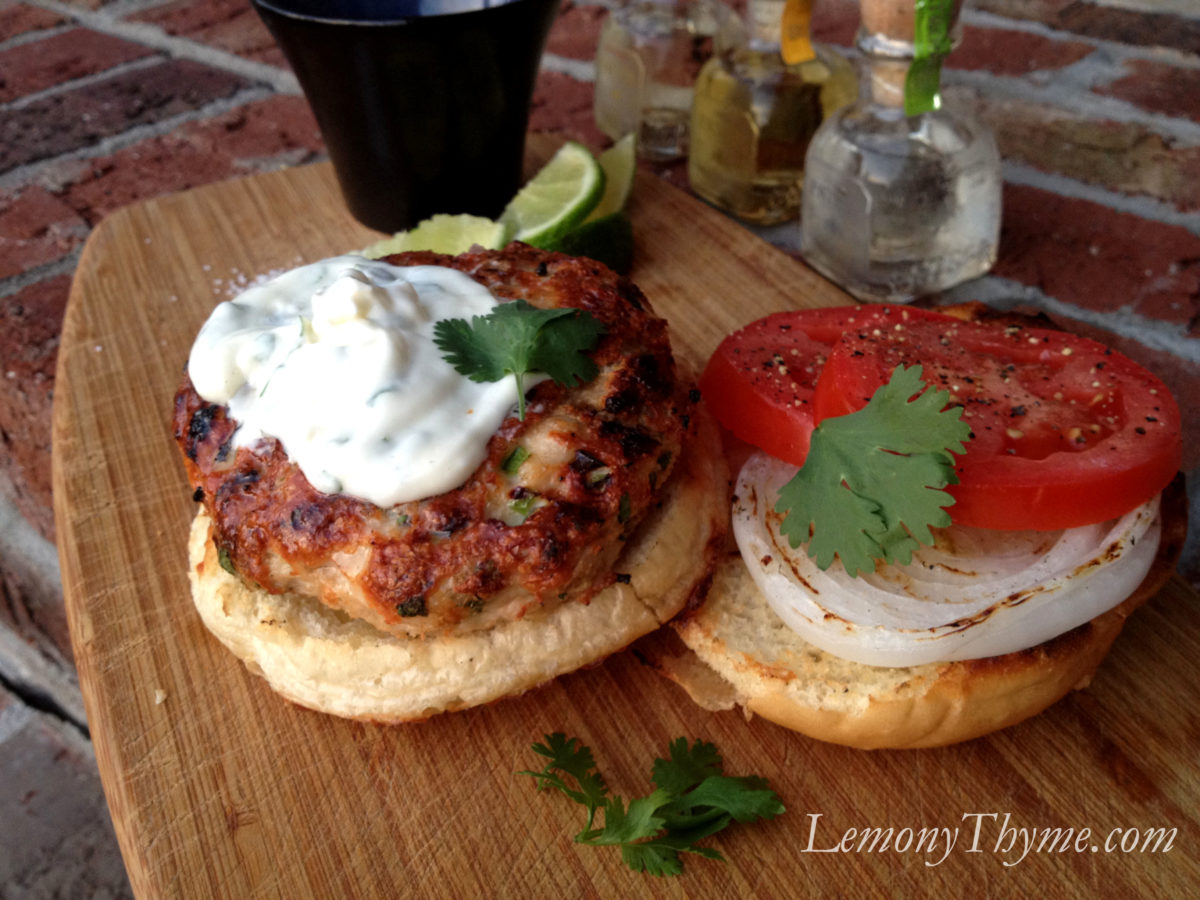 Grilled Chicken Tequila Burgers {with Cilantro-Lime Mayo}