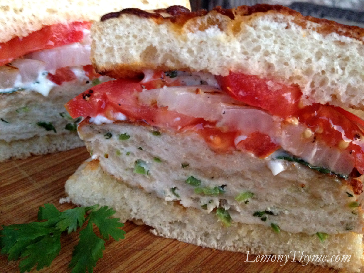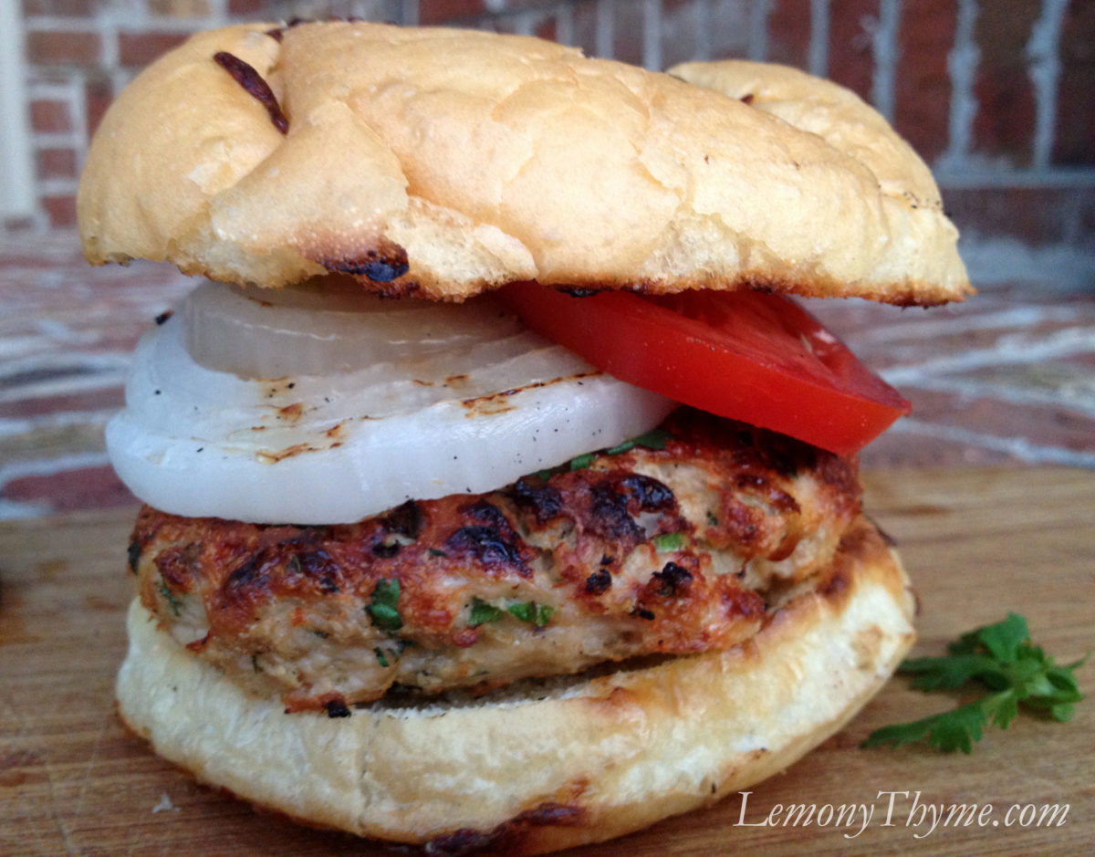 Tonight however, I saw this recipe for Grilled Chicken Tequila Burgers in this month’s issue of Southern Living and thought it was right up my alley. We just slightly tweaked the recipe by adding 1 Tbl. olive oil for improved moisture and substituted sliced tomatoes for red bell pepper.