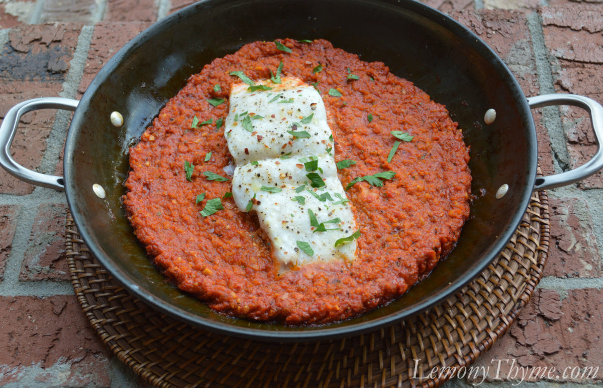 Halibut in Roasted Romesco Sauce {with Pasta}