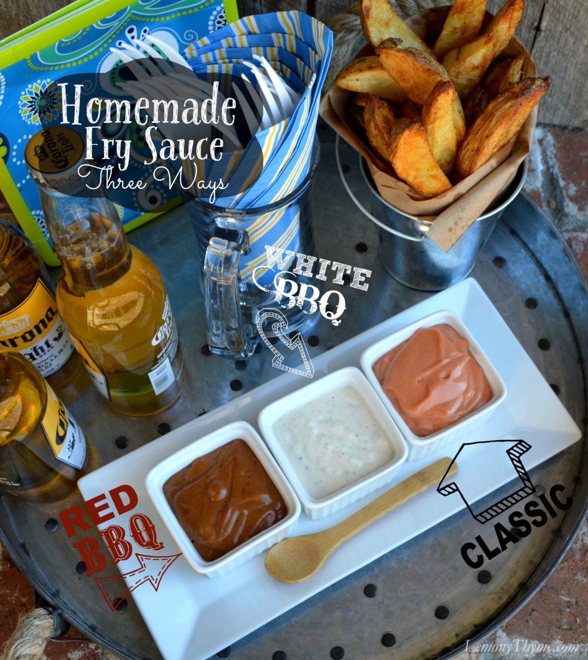 - For each fry sauce, combine ingredients, then refrigerate until ready to use.