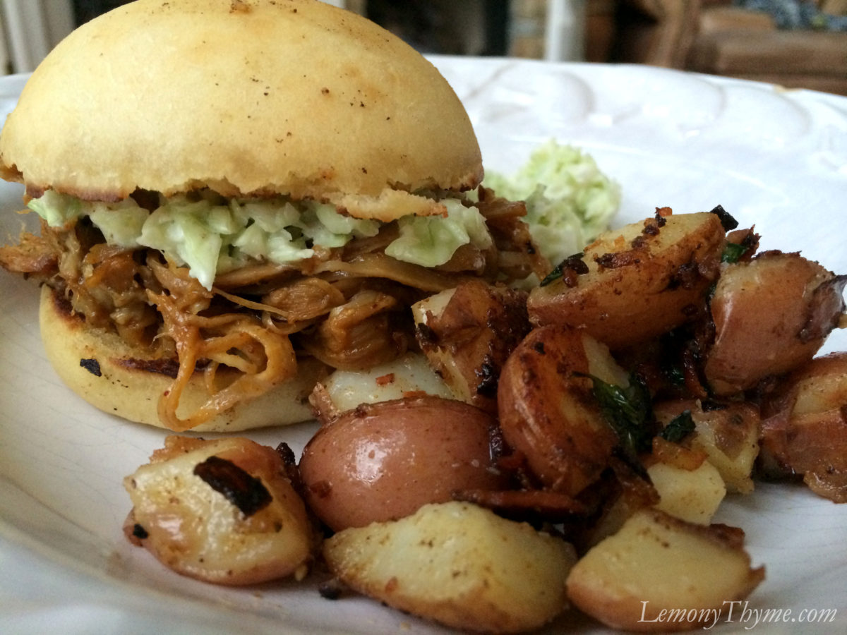 The next two Homemade Hamburger Buns were topped with yummy slow-cooked pulled pork. THE single inspiration for making these buns. Check out our Warm German Potato Salad recipe that was a perfect side dish.