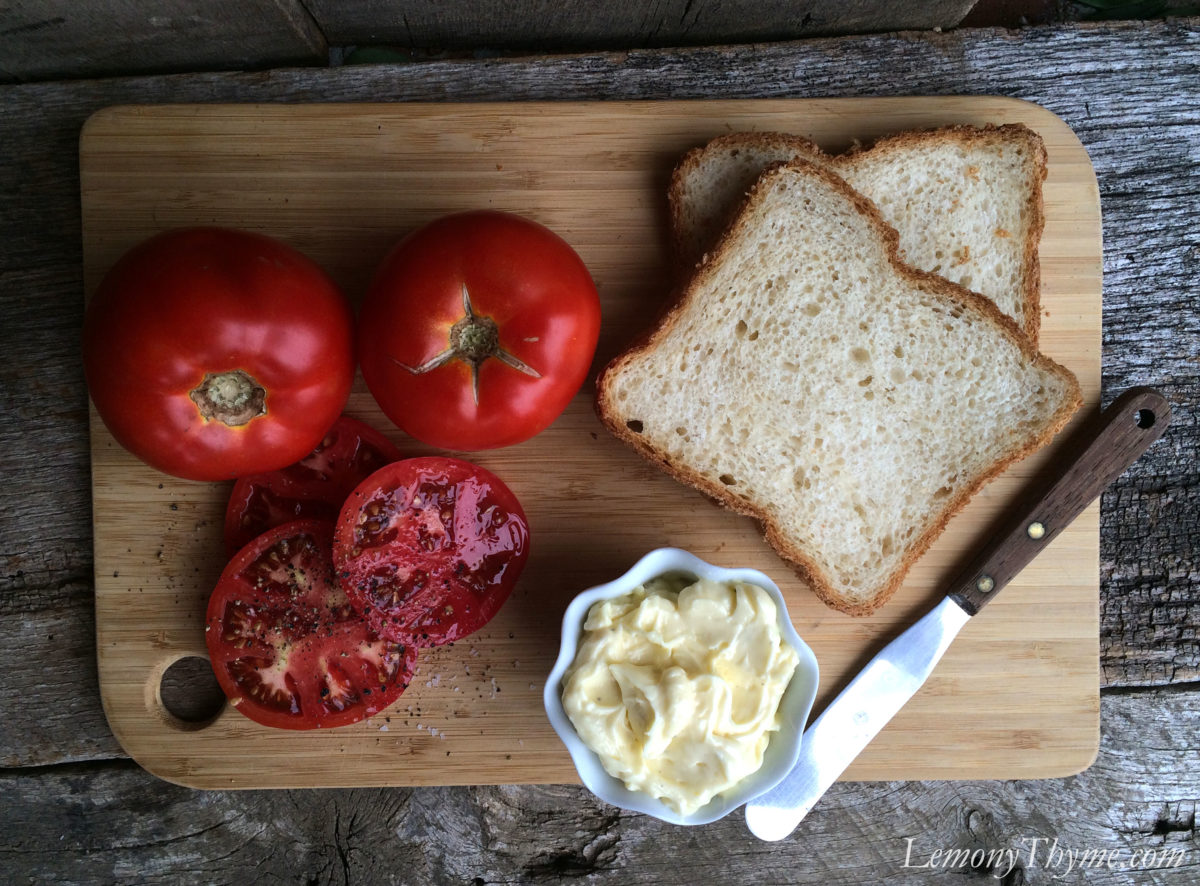 When summer tomatoes are at their best, I could eat a ‘matter’ sandwich for dinner every night. Give me some fresh baked white bread, sliced garden tomatoes, Homemade Mayonnaise and listen to me utter these words. Good gracious!
