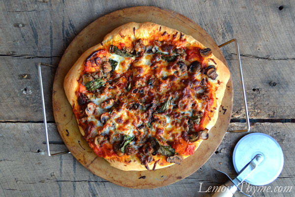 So while our pizza was fabulous (with my favorite toppings of sausage & mushrooms) this post is for all of you who own a bread machine that’s collecting dust. Break it out and let it do the work. You can still take credit for the end result.