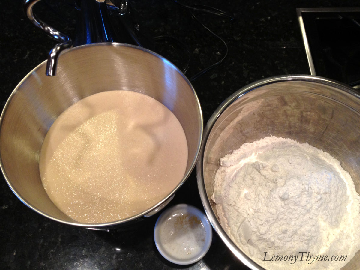 - Combine the water, sugar and kosher salt in the bowl of a stand mixer and sprinkle the yeast on top.