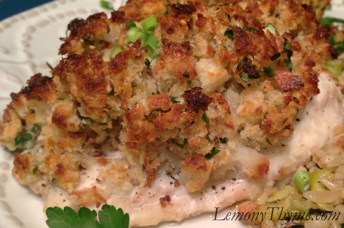 The fish will be moist and the topping will become crispy on the outside and bursting with flavor on the inside. This dish can be prepared for baking several hours ahead which makes it a great meal for entertaining friends. Let stand at room temperature for 10 – 15 minutes before baking. Serve with vegetable medley or a nice Orzo & Roasted Brussels Sprout Saute. Horseradish & Herb Encrusted Grouper is definitely on our favorites list.