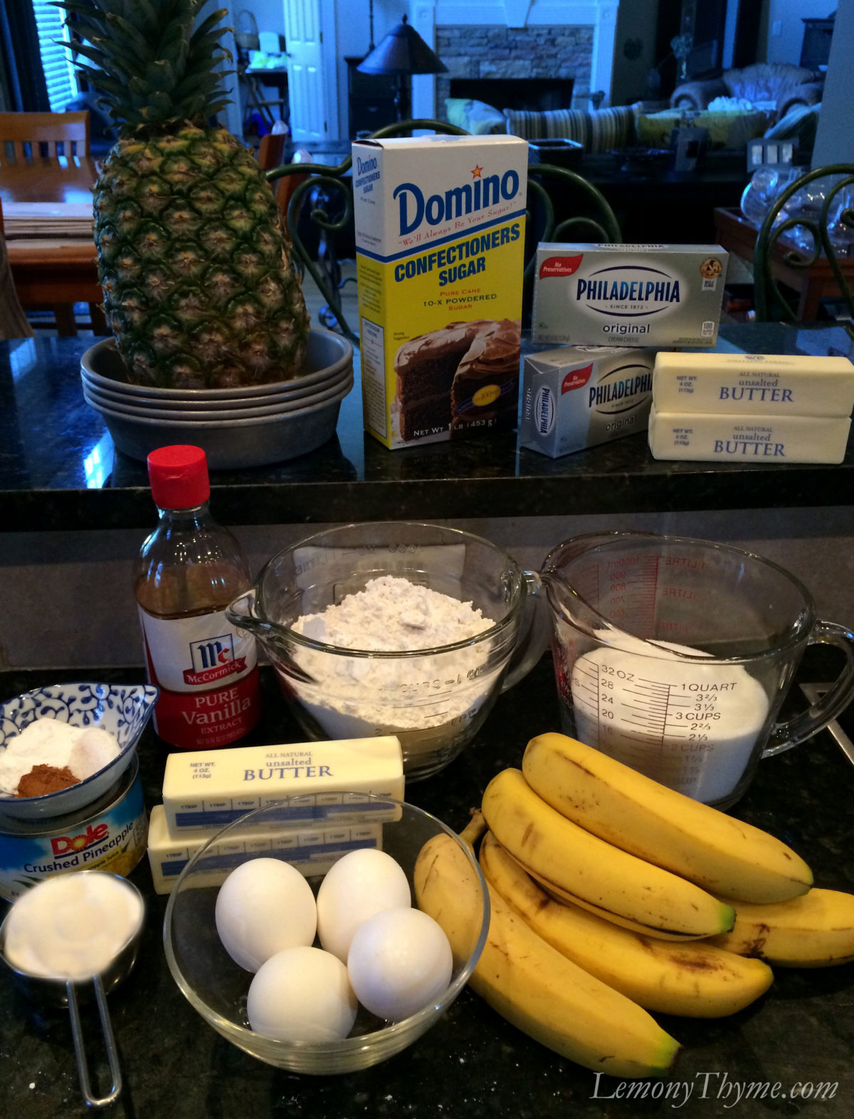 - Add flour mixture to butter mixture, alternating with buttermilk, beating until just combined after each addition. Then add in the bananas and pineapple and beat until combined.