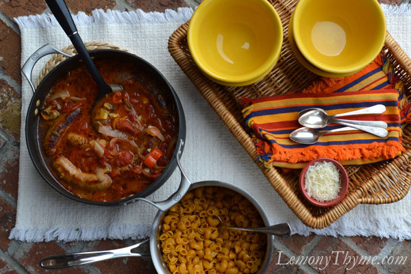 • Adjust seasoning to taste. Slice sausage into chunks before serving. Place warm pasta in bowls, topped with a ladle or two of hot soup. Sprinkle with grated parmesan cheese. Serve with toasted Italian bread.
