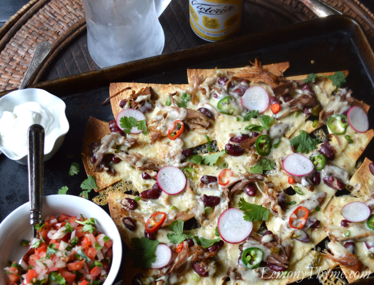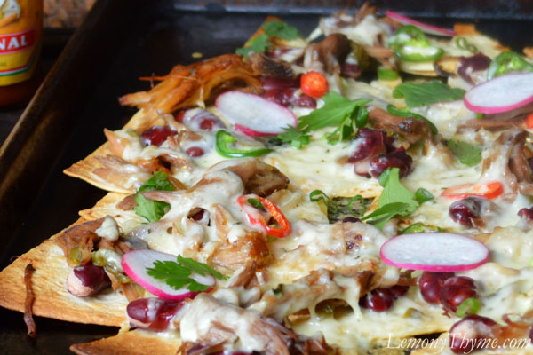Jalapeño Pulled Pork Loaded Nachos. That wonderful crockpot of love was dinner last night and it’s about to be Football Food Tonight!