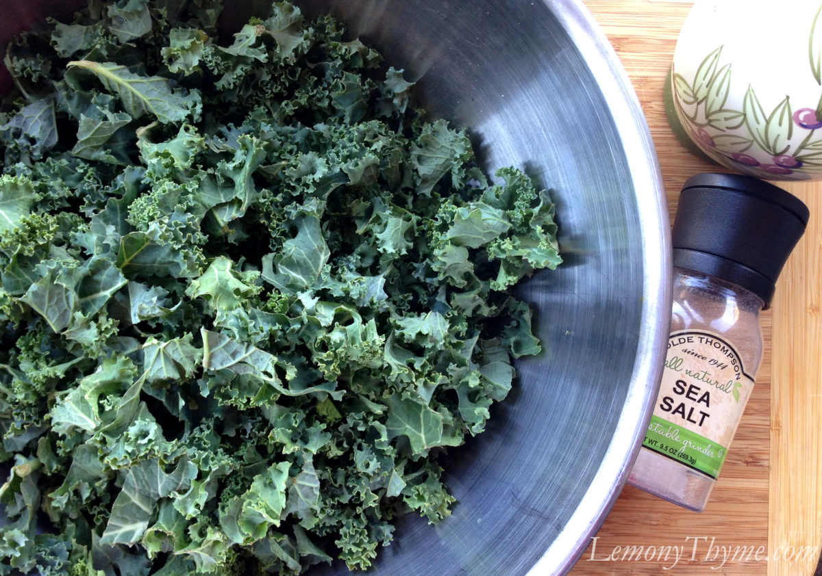 - Trim kale leaves, removing thick stems. Tear into bite-sized pieces then wash and thoroughly dry (air dryng is great).