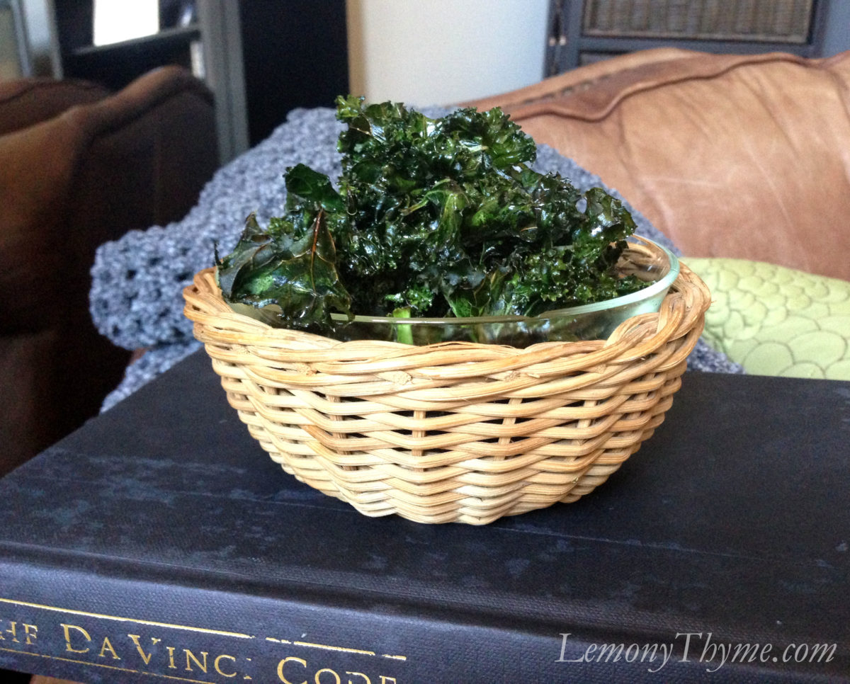 Pull up a comfy chair, a good book, and settle in with a healthy guilt free snack. And if there’s any left over, you can grind them up and sprinkle them on roasted veggies, soups, and casseroles. I owe that treasure of a tip to Tammy, one of my office buddies who discovered how to incorporate kale into her family meals without a single complaint. Hail to Kale.