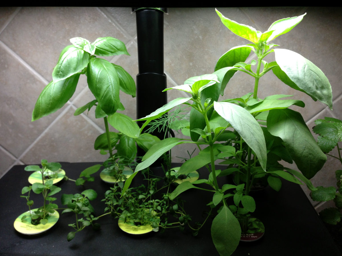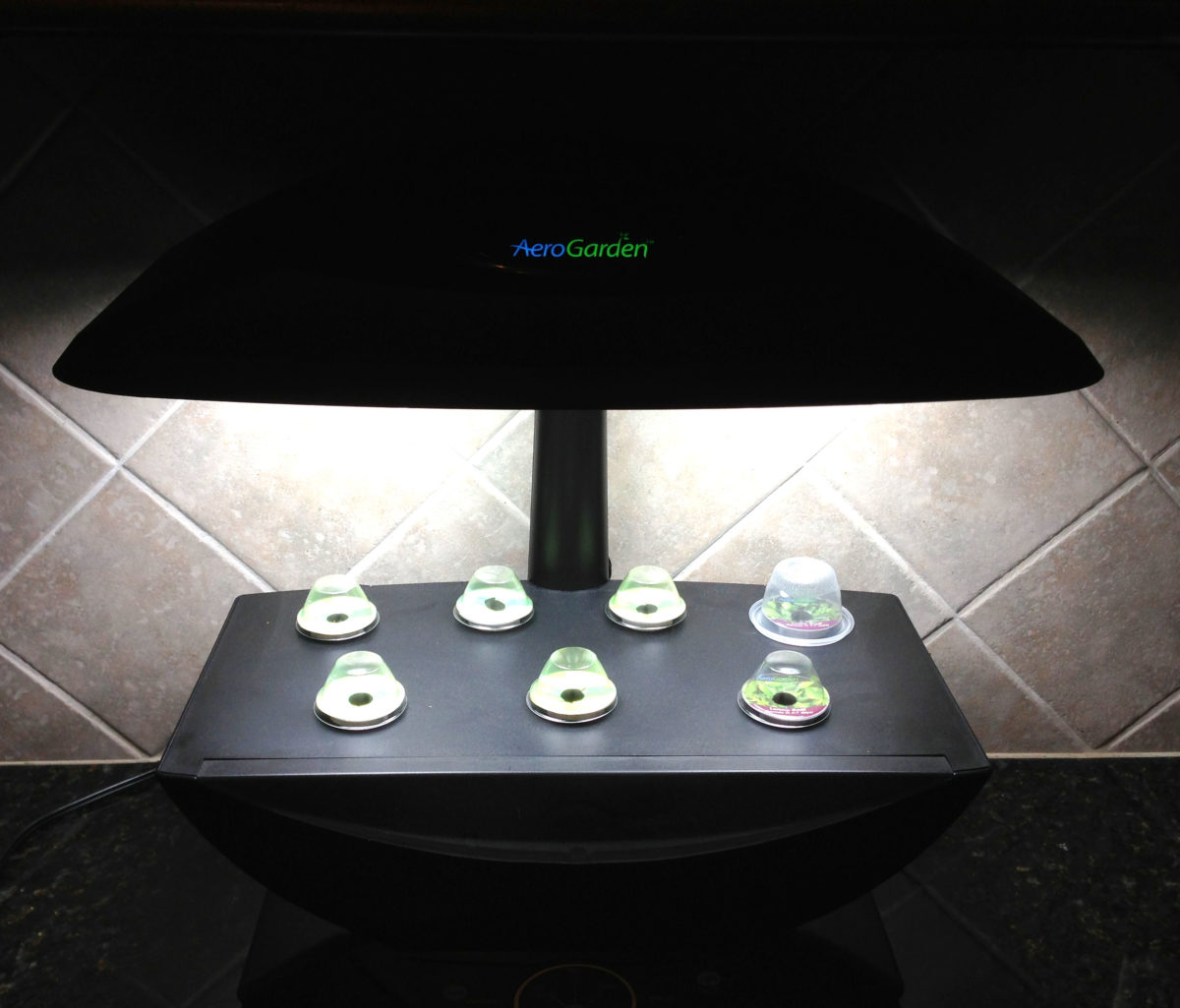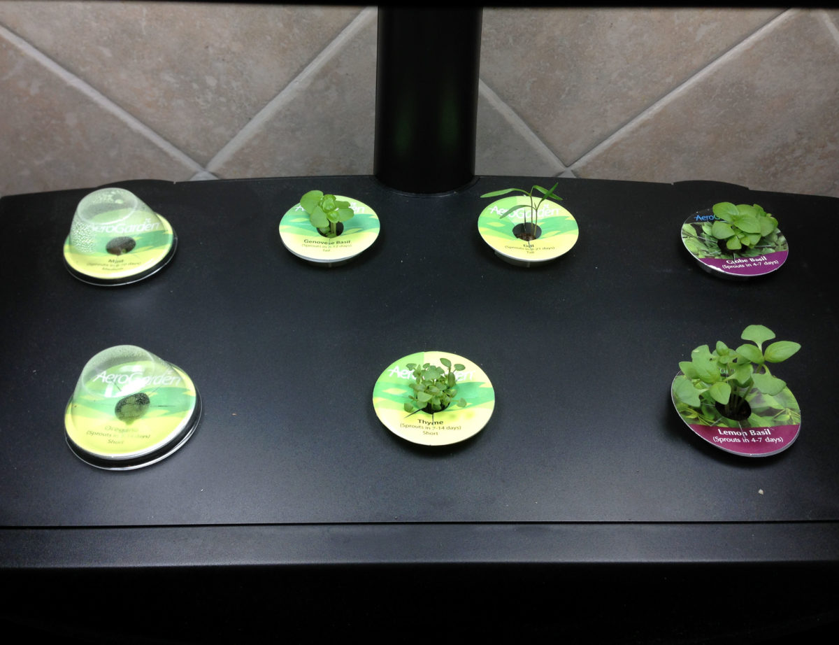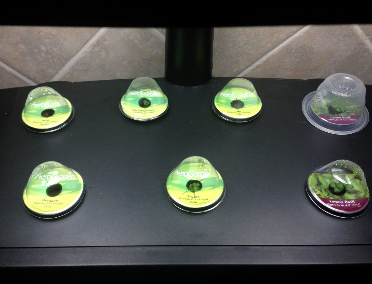 For Christmas we received the coolest gift, an Aero-Garden. It came complete with seven herb-pods ready for ‘planting.’ I envisioned them transitioning from their water garden to our back porch pots in the Spring, so I waited to plant them until 6 weeks ago. Here are some pictures of our journey.