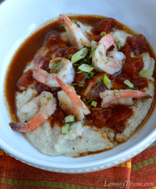 - To serve, place a serving of grits in a bowl, top with shrimp, then a ladle of sauce. Garnish with scallions.
