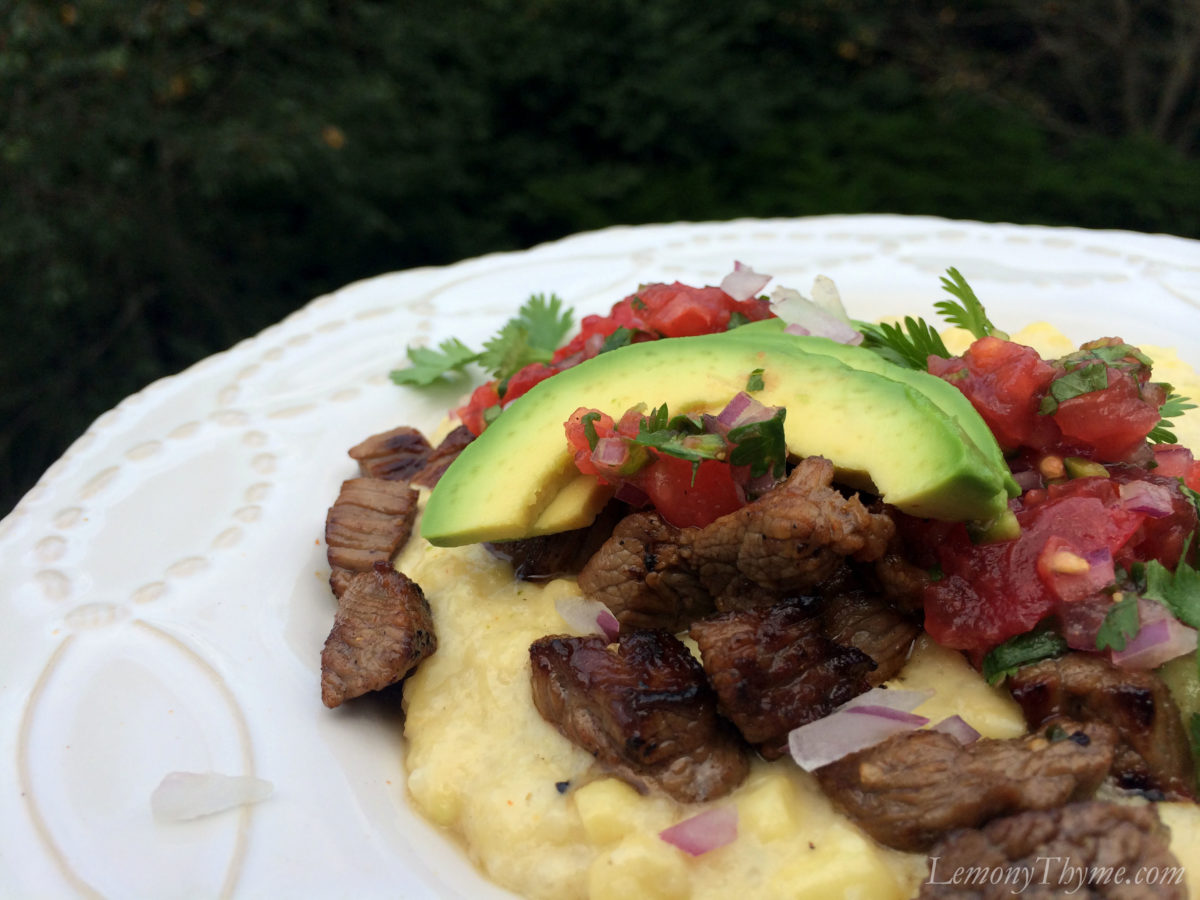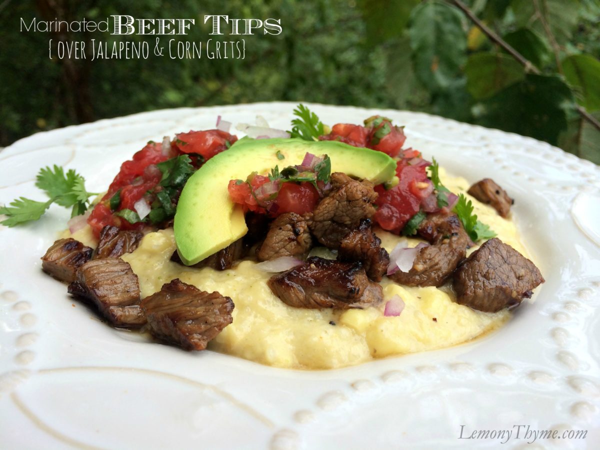 Carne Asada Marinated Beef Tips {over Jalapeño & Corn Grits}