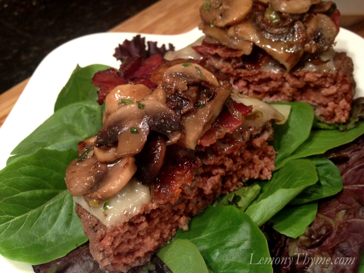 Is there anything better than a good burger?  Okay yes… there are some things, but on the rare occasion that we actually make beef burgers (vs. turkey or salmon) they are such a huge treat.  Whether you lay them on a bed of greens or perched on a toasted onion roll they are amazing.  Top them with a slice of nutty pungent Swiss cheese, sautéed mushrooms, and a couple of strips of crispy bacon…. Mushroom Bacon Swiss Burgers = WINNING!!