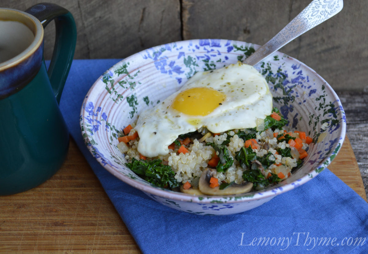 Mushroom & Kale Quinoa Breakfast Bowl.